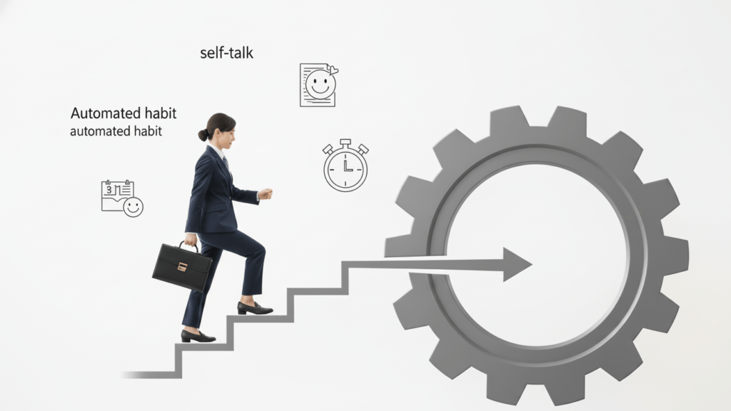 行動科学では、習慣は「きっかけ(Cue)」→「行動(Routine)」→「報酬(Reward)」というループで形成されることが知られています。自己信頼に基づく行動を習慣化するためには、このループを意識的に設計しましょう。例えば、「コーヒーを淹れる(きっかけ)」→「未来の目標を確認する(行動)」→「達成感を感じる(報酬)」といった具合です。特に「報酬」は、「自分は有能だ」「一歩前進した」というポジティブな感情**に設定することが、自己信頼を強化するための重要な道筋となります。
