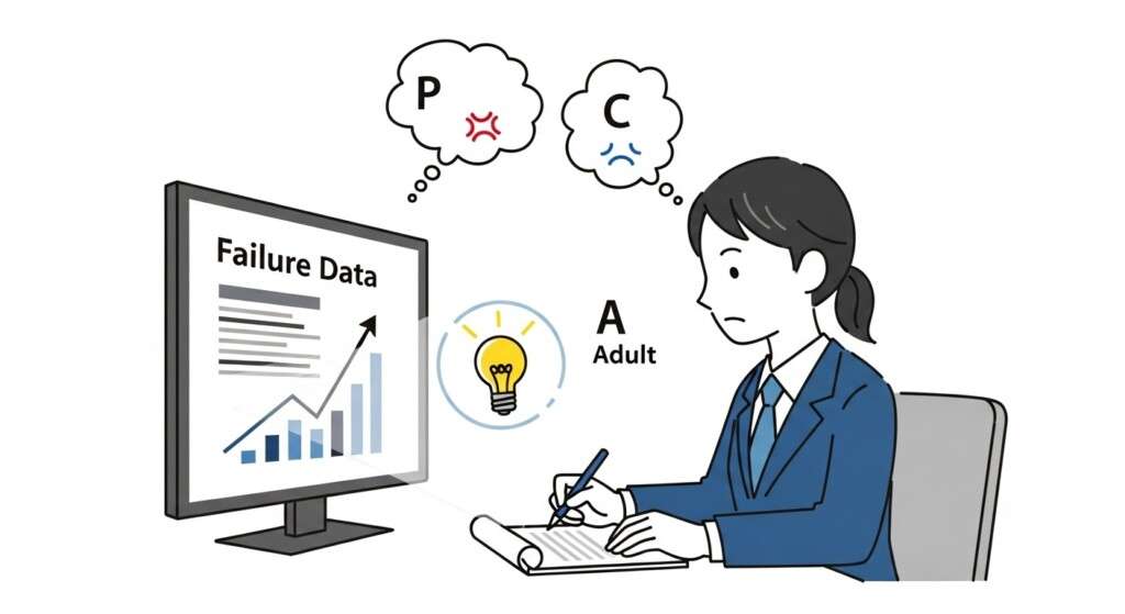 失敗から学びを得るために、私たちが必ず戻らなければならない心の状態が、「成人(Adult)」のモードです。Aモードは、感情に流されず、事実、データ、確率に基づいて冷静に判断を下す自我状態です。