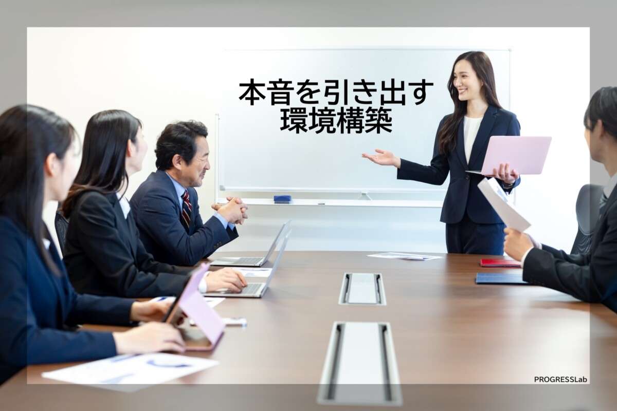 例えば、「実は、この新規事業の方向性で少し迷っているんだ。みんなの意見を聞かせてほしいな。君たちの現場の視点からの意見が欲しいんだ」と正直に打ち明ける。 - 「質問を歓迎する」姿勢を明確に示すこと。