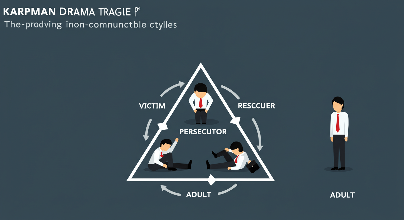 • 結果: リーダーは「救済者」として一時的に自己満足を得ますが、部下は「無能な被害者」としての役割を強化し、自律的な解決能力を失います。