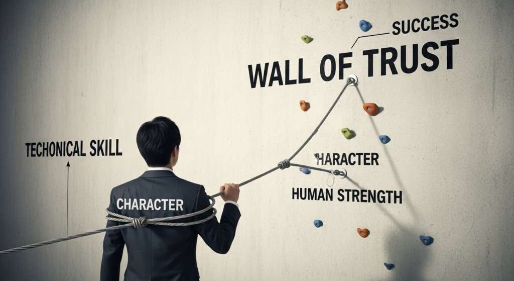 スキルや業績は「信用」を築きますが、不確実な局面で人々を動かすのは「信頼」です。たとえば、新市場への参入というハイリスクな挑戦をするとき、社員がついてくるのは、リーダーの過去の成功(信用)よりも、「この人は私たちの幸福を願って、誠実な判断をしているだろう」という品性への信頼があるからです。
